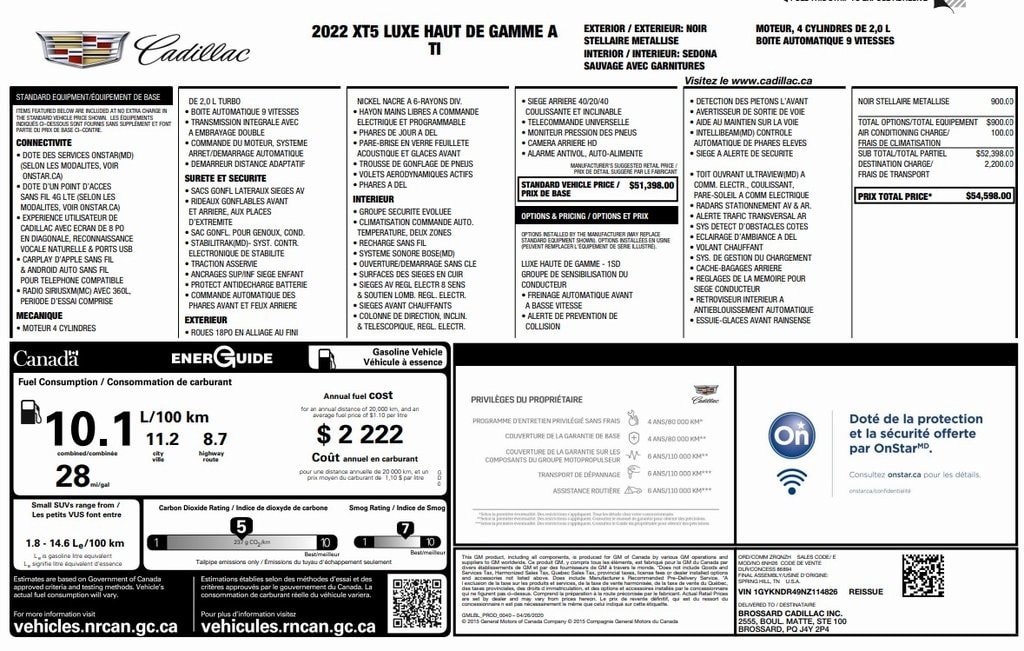 - Emergency communication system: OnStar and Cadillac connected services capable