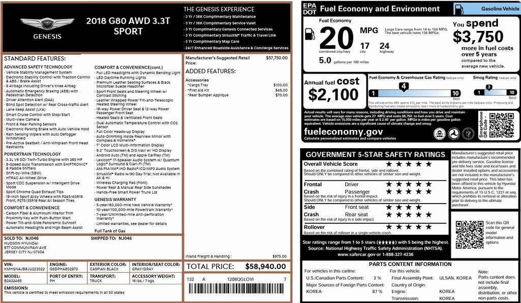 2018 Genesis G80 3.3T Sport