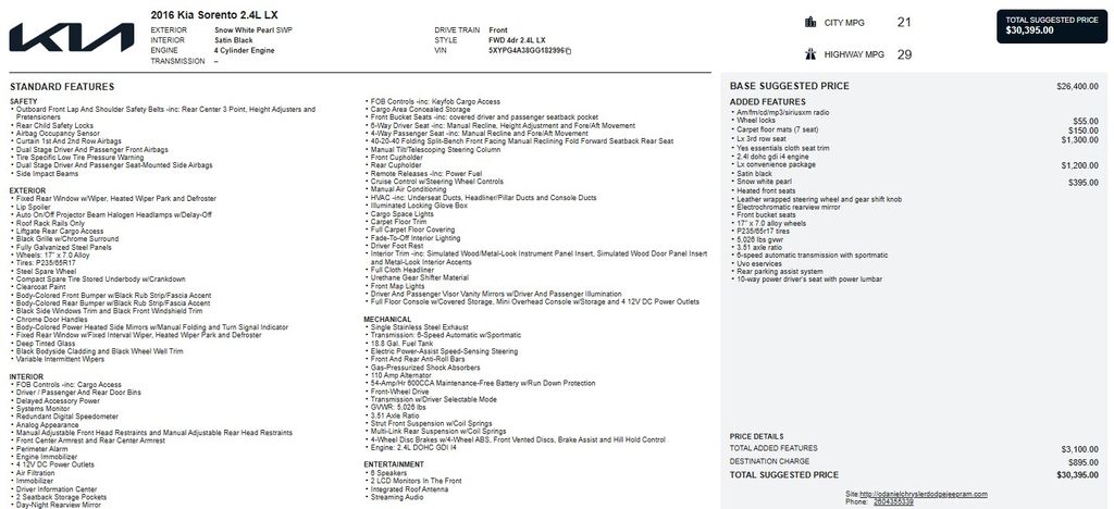 This Sorento LX offers an impressive array of features that cater to your every need. The 2.4L DOHC engine, paired with a 6-Speed Automatic Transmission with Sportmatic, delivers a smooth and responsive ride, while the front-wheel-drive configuration provides confident handling. With an EPA-estimated 21 MPG in the city and 29 MPG on the highway, this Sorento LX strikes the perfect balance between power and efficiency.