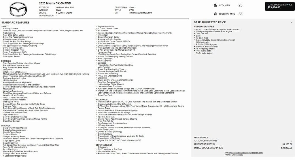 - Fuel economy city: 25mpg