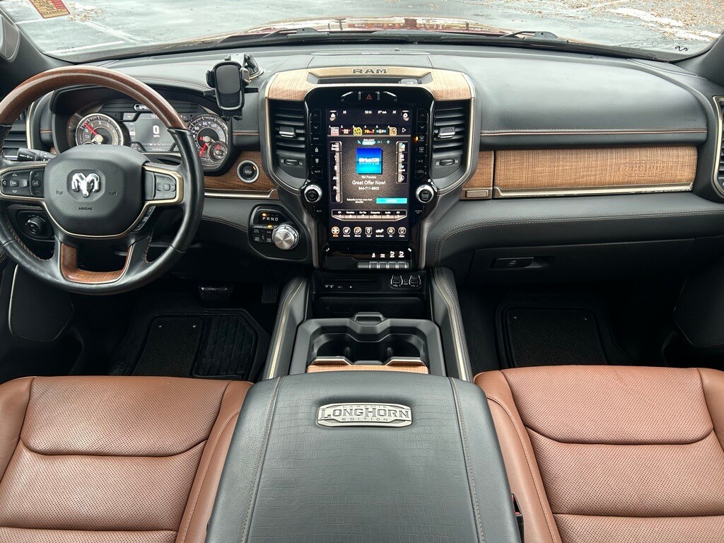 Navigation/GPS/Navi, Tinted Windows, Back-Up Camera!, Front & rear Heated Seats, Heated/Cooled Seat, Bluetooth/HandsFree, Longhorn Level 1 Equipment Group, Bed Utility Group, 1-Yr SiriusXM Guardian Trial, 12" Touchscreen Display, 4 Adjustable Cargo Tie-Down Hooks, Apple CarPlay/Android Auto, Bed Utility Group, Blind Spot & Cross Path Detection, Disassociated Touchscreen Display, Foam Bottle Insert (Door Trim Panel), Google Android Auto, GPS Antenna Input, GPS Navigation, harman/kardon 19 Speaker Premium Sound, HD Radio, Heated front seats, Heated rear seats, Heated Steering Wheel, Integrated Center Stack Radio, Longhorn Level 1 Equipment Group, No Satellite Coverage w/HI/AK/PR/VI/GU, ParkView Rear Back-Up Camera, Pick-Up Box Lighting, Power 4-Way Passenger Lumbar Adjust, Power 8-Way Driver & Passenger Seats, Power Running Boards, Quick Order Package 25K Longhorn, Radio: Uconnect 12 w/Navigation, SiriusXM Satellite Radio, SiriusXM Traffic Plus, SiriusXM Travel Link, SiriusXM w/360L, USB Host Flip, Ventilated front seats, Ventilated Rear Seats, Wheels: 20" x 9" Aluminum Painted/Polished, Wireless Charging Pad.