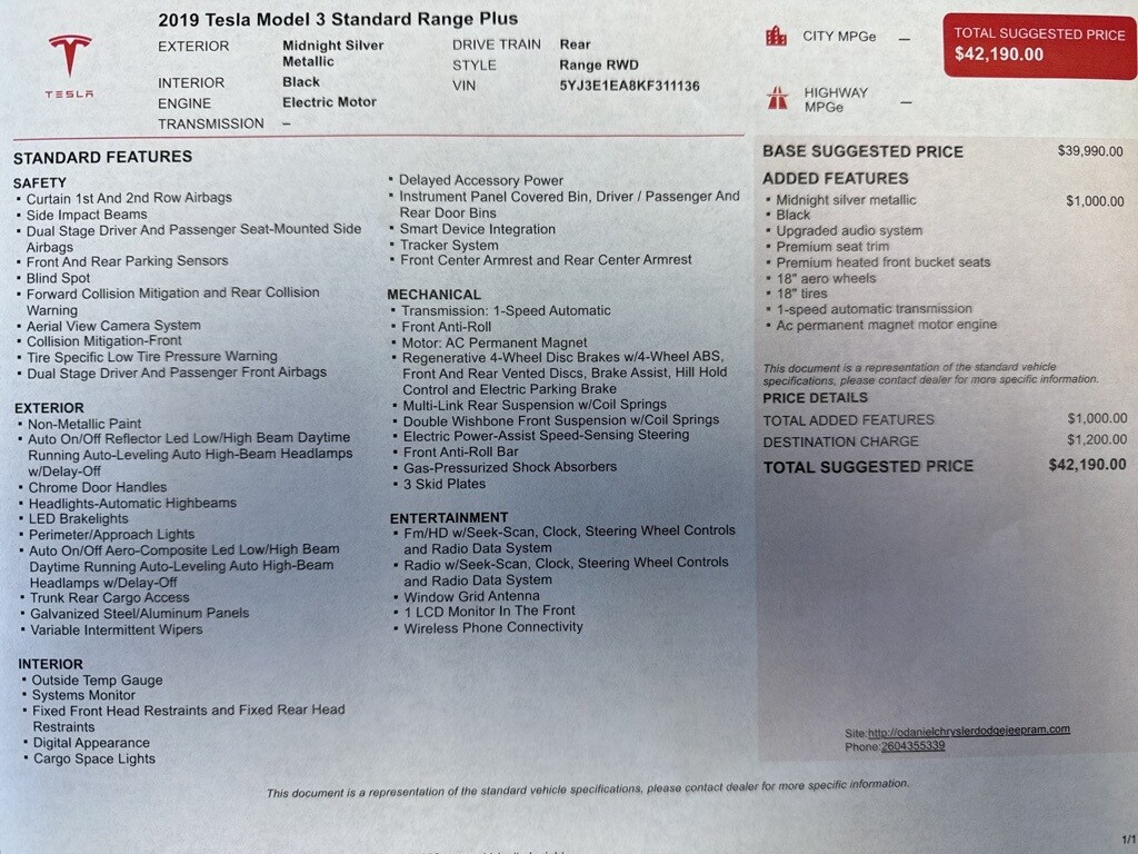 2019 Tesla Model 3 Standard Range Plus