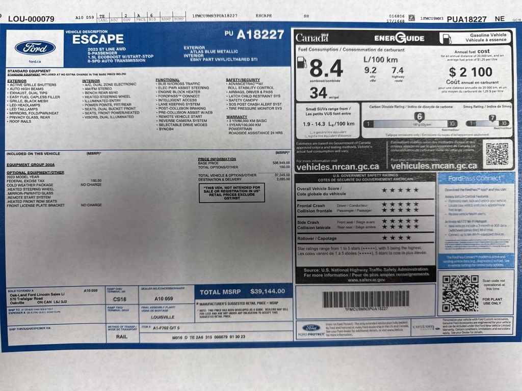 2023 Ford Escape ST-Line Atlas Blue Metallic AWD 1.5L EcoBoost