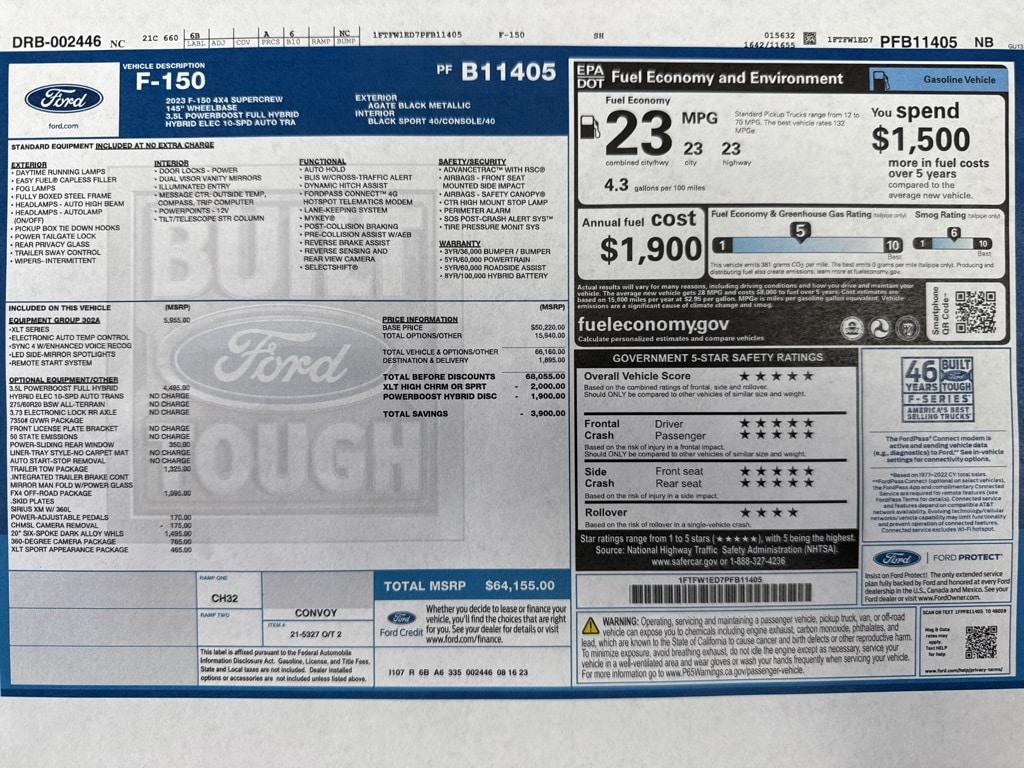 Extra Clean!, One Owner!, F-150 XLT, 4D SuperCrew, 3.5L PowerBoost Full-Hybrid V6, 10-Speed Automatic, 4WD, Agate Black Metallic, Black Cloth, 10-Way Power Driver & Passenger Seats, 2-Bar Style Grille w/Chrome 2 Minor Bars, 4x4 FX4 Off-Road Bodyside Decal, 8" Productivity Screen in Instrument Cluster, Accent-Color Step Bars, Auto-Dimming Rear-View Mirror, Black 2-Bar Style Grille w/Black Surround/Accents, Body-Color Door & Tailgate Handles, Body-Color Front & Rear Bumpers, Box Side Decals, Bright Polished Step Bars, Chrome Door & Tailgate Handles w/Body-Color Bezel, Chrome Single-Tip Exhaust, Class IV Trailer Hitch Receiver, Dual Zone Electronic Automatic Temperature Control, Equipment Group 302A High, FX4 Off-Road Package, Heated Front Seats, Hill Descent Control, Integrated Trailer Brake Controller, Intelligent Access w/Push Button Start, LED Reflector Headlamps, LED Sideview Mirror Spotlights, Monotube Rear Shocks, Off-Road Tuned Front Shock Absorbers, Onboard 400W Outlet, Power Glass Heated Sideview Mirrors, Pro Trailer Backup Assist & Pro Trailer Hitch Assist, Radio: AM/FM SiriusXM w/360L, Rear Under-Seat Storage, Remote Start System w/Remote Tailgate Release, Rock Crawl Mode, SecuriCode Drivers Side Keyless-Entry Keypad, SYNC 4 w/Enhanced Voice Recognition, Trailer Tow Package, Unique Sport Cloth 40/Console/40 Front-Seats, Wheels: 18" 6-Spoke Machined Aluminum, Wheels: 18" Chrome-Like PVD, Wrapped Steering Wheel, XLT Chrome Appearance Package, XLT Sport Appearance Package, Zone Lighting.